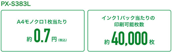 エプソンのホームページを見るとA4サイズの印刷では1枚あたり約0.7円!